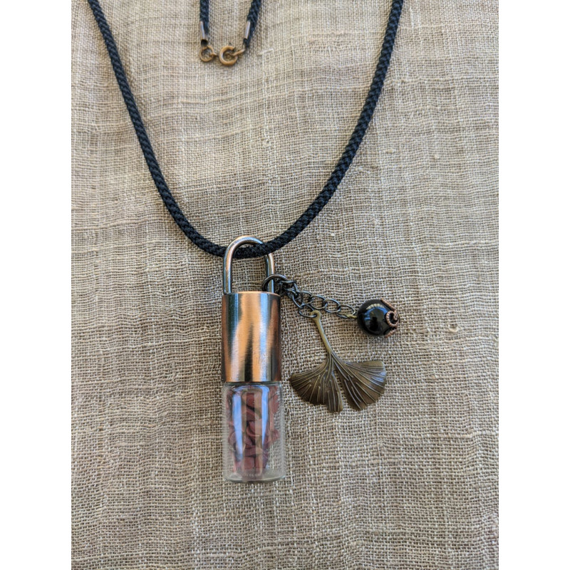 Décoré avec 1 perles d'agate de couleur noire et une feuille de ginkgo