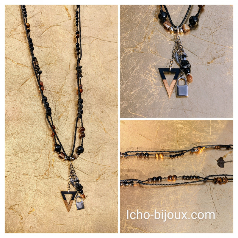 202310 Sautoir obsidienne et œil du tigre