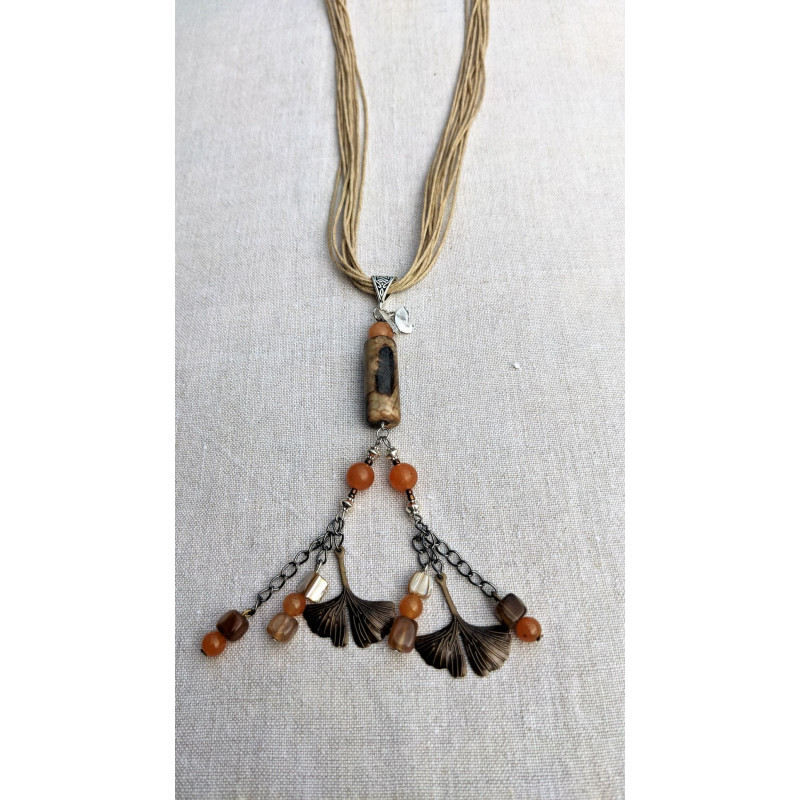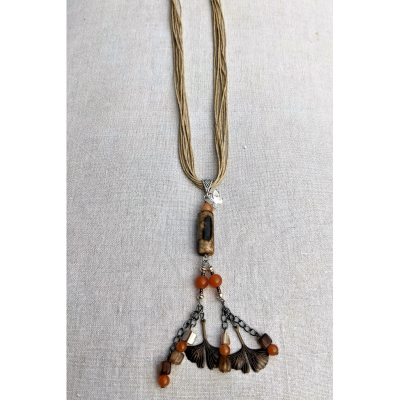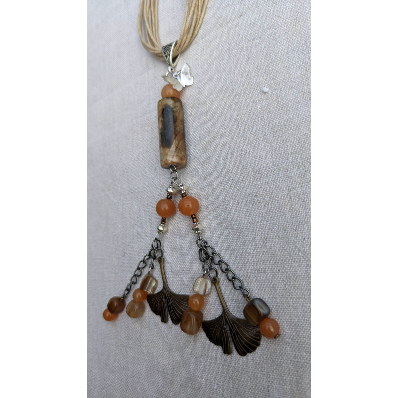 tube d'agate et pampilles de cornalines et ginkgo