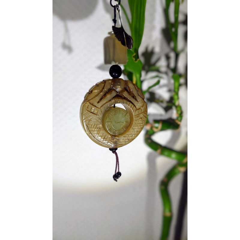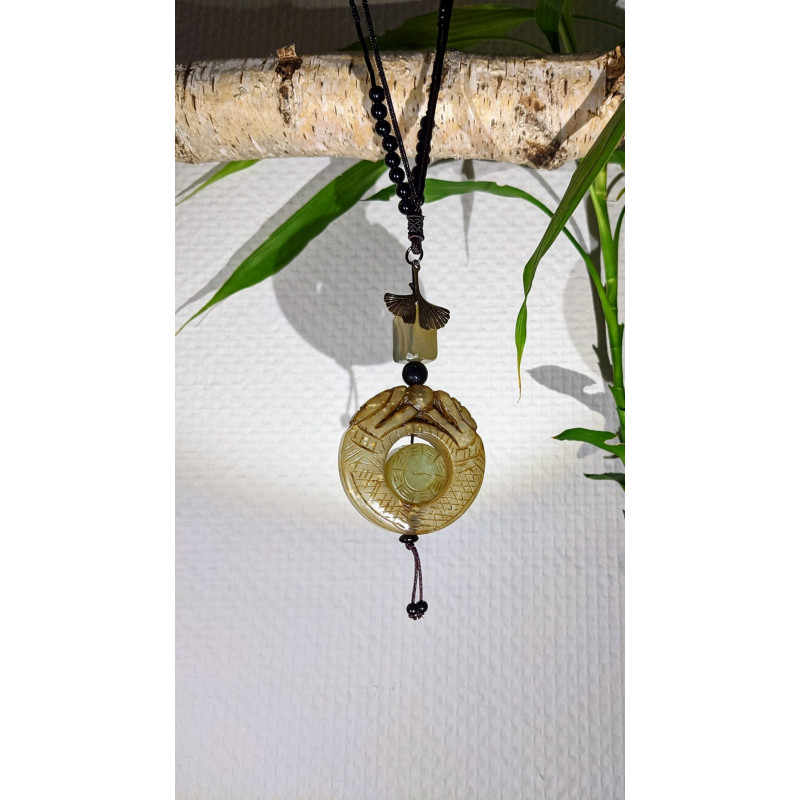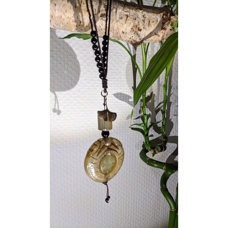 2022 12 Pendentif ancien en pierre dure Ying Yang représentant le cycle de la vie avec des perlesd'obsidienne