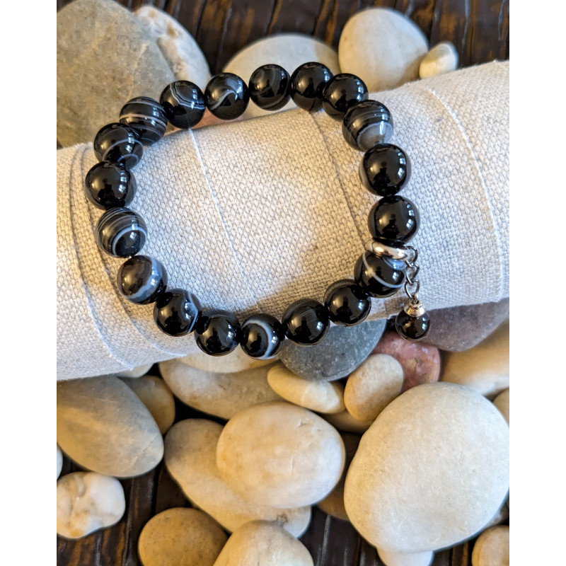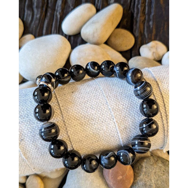 L’agate noire à bandes ou rubanée favorise l’équilibre corps/esprit et stimule l’intellect. C’est une pierre de stabilisation et de force.