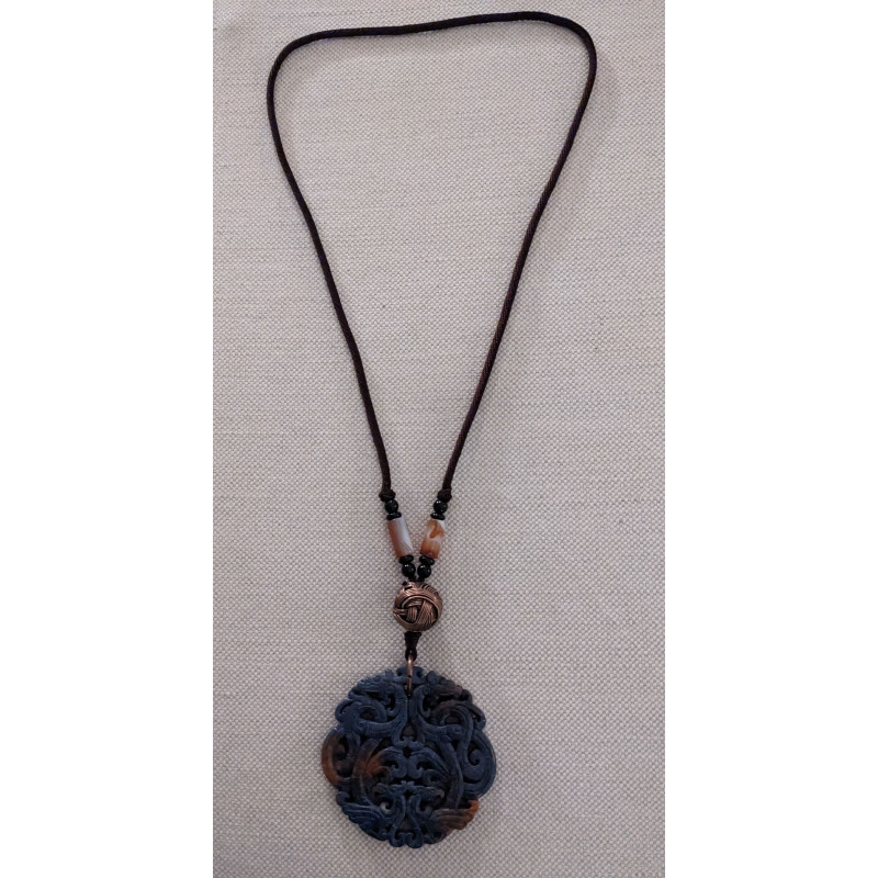 Médaillon en Henan de jade naturel. Le jade aide à trouver la paix intérieure ce qui favorise l'apaisement du mental. L'esprit se libère et laisse place à la quiétude.