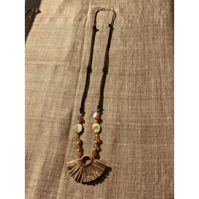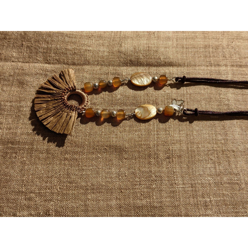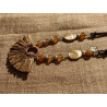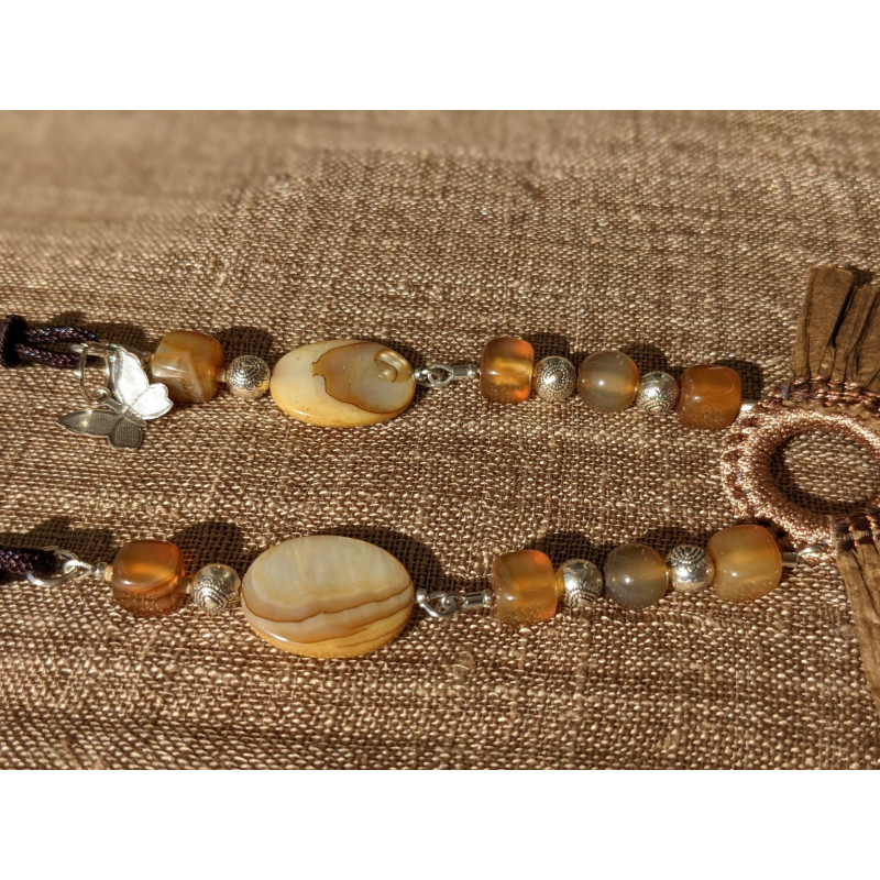 Collier long avec perles d'agate couleur café, pierre qui en lithothérapie réduit le stress, aide à l'endormissement et renforce la confiance en soi