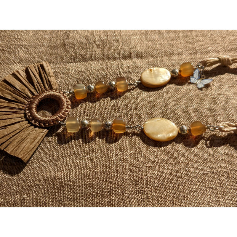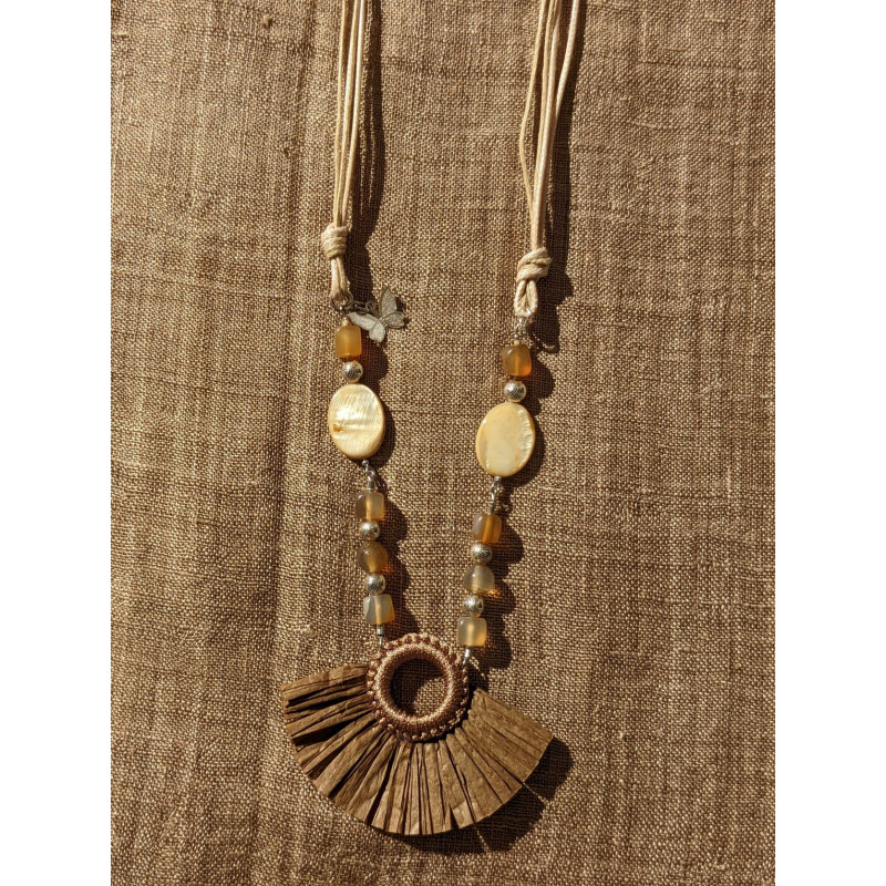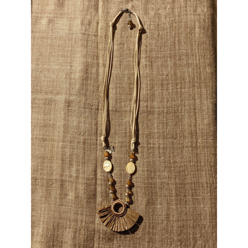 A 1d- Agathe couleur café et pendentif en rafia