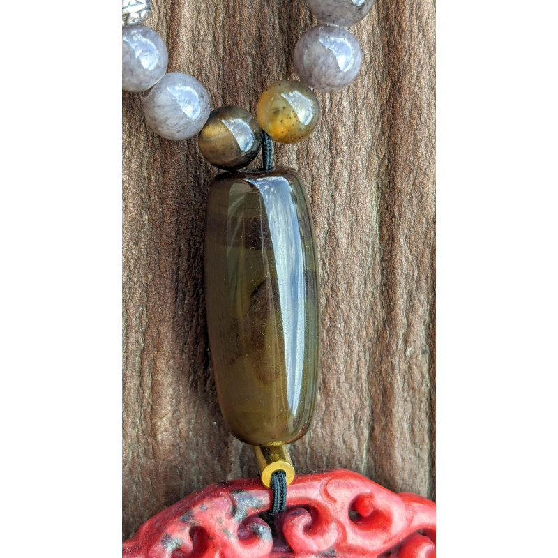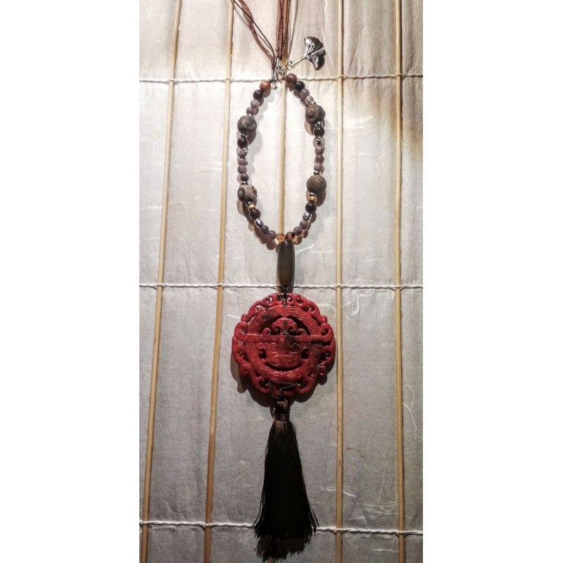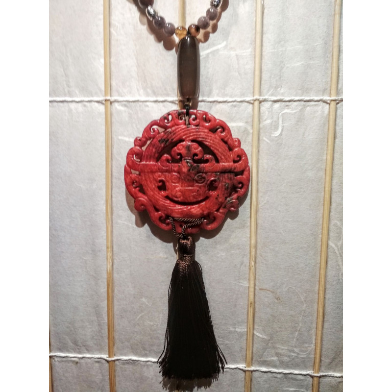 Medaillon jade Henan bordeaux