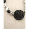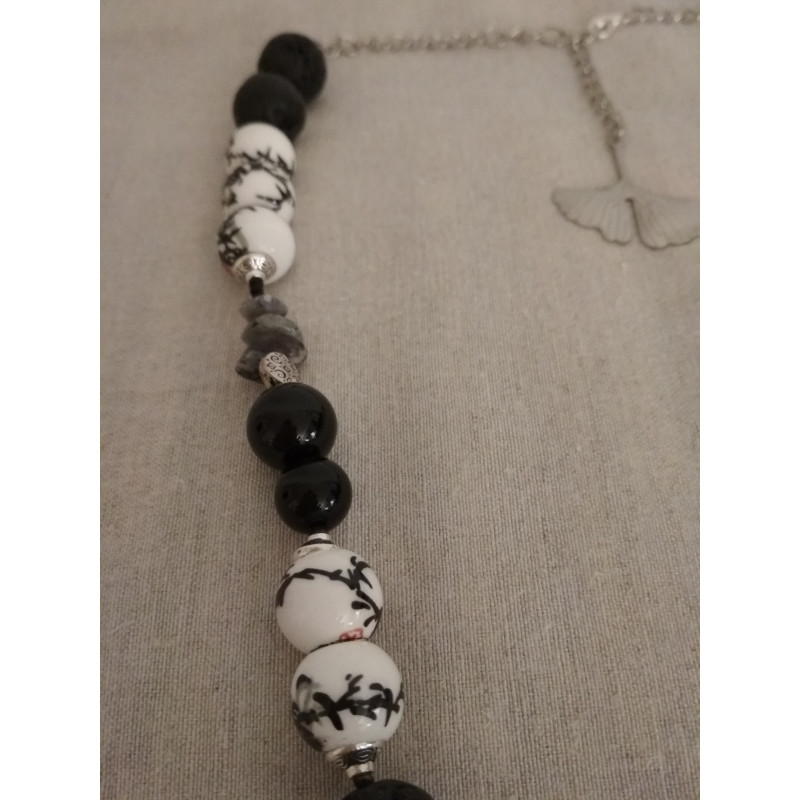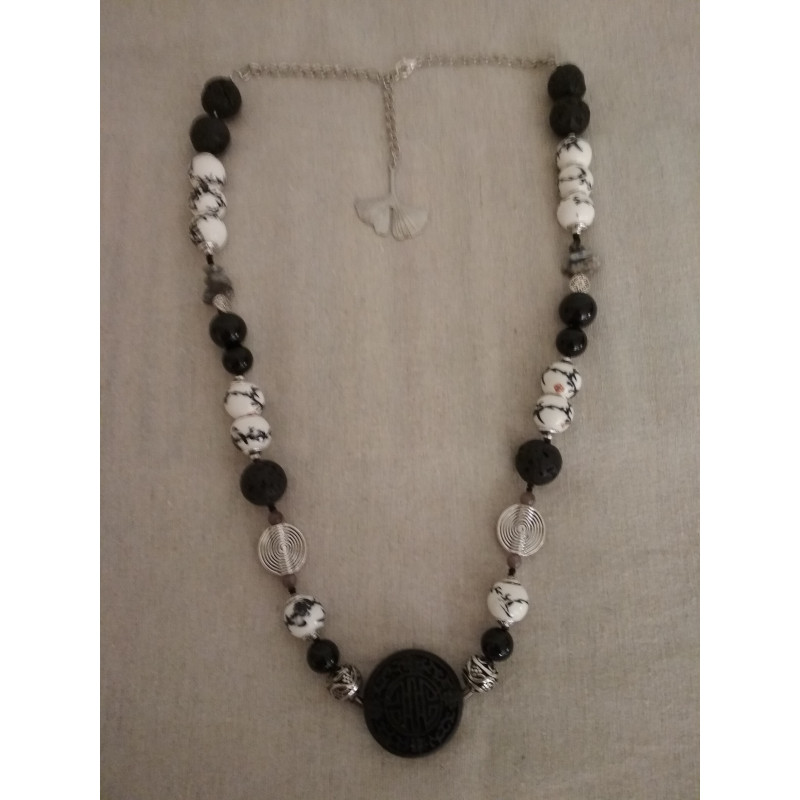 Pièce de Cinabre, perle de porcelaine peinte, perle de lave, pépites de jade