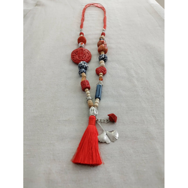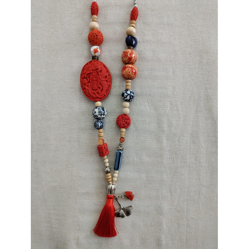 Collier avec un médaillon en cinabre pourpre.