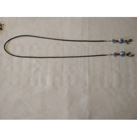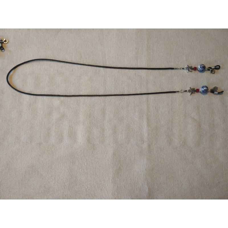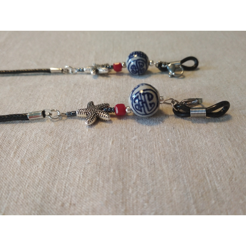 Porte masque ou lunettes avec des etoiles de mer en metal acier inoxydable et des perles de porcelaine peintes